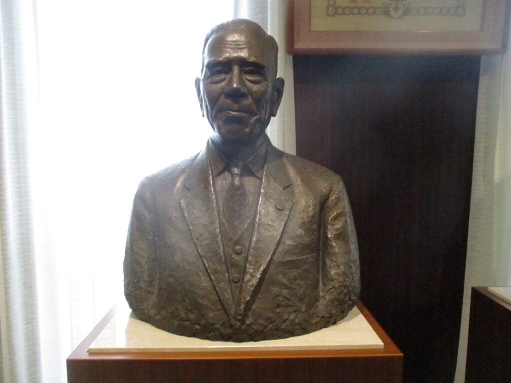 設置経緯::小原鐵五郎(1899年10月28日- 1989年1月27日)氏は日本の信用金庫経営者。信金業界の業界団体のトップとして長きにわたってリーダーシップを発揮し、信用金庫の発展に努め、信金業界において多大な功績を残した。その実績から「信用金庫の神様」とも呼ばれている。小原氏は、1899年に東京府荏原郡大崎村の農家の四男として生まれました。1919年に大崎信用組合の設立に参加し、1930年には産業組合中央会主催の弁論大会で「信用組合の貸出金について」というテーマで1等賞を受賞しました。1945年4月に大崎信用組合の専務理事に選任され、また同年8月には城南信用組合発足と同時に専務理事に就任しました。小原氏は、1956年に第3代理事長に就任し、さらには1963年に全国信用金庫連合会の会長に、1966年には全国信用金庫協会の会長に就任するなど、名実ともに業界を指導するリーダーとなりました。東京都中央区京橋にある信用金庫会館京橋別館前にも小原氏の寿像が設置されている。