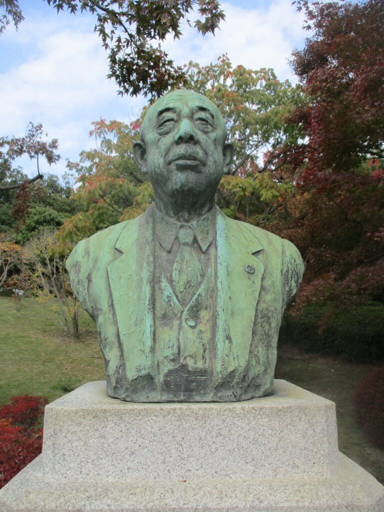 By 林 久治2025年12月14日Category: 00.乱歩(林久治), 28.大阪府の銅像, 三島地域Tags: 政治家, 経営者 設置場所:大阪府吹田市出口町12-1 アサヒビール先人の碑庭園制作者:新海竹蔵(1897 – 1968)設置時期:1951年4月画像提供:林久治⇒銅像探索記/f 設置経緯:高橋龍太郎(1875年7月15日 – 1967年12月22日)氏は、愛媛県喜多郡内子村(現内子町)生まれ。昭和期の実業家、政治家。1898年第三高等学校機械科卒業後。直ちに大阪麦酒に入社、大日本麦酒社長(第2代:1937年-1949年)。ビール製造技術者から経営者となり、「日本のビール王」とも称される。大日本麦酒退社後、参議院議員(1期)、通商産業大臣、高橋ユニオンズオーナー、日本サッカー協会会長(第3代)などを歴任。 設置場所:大阪府吹田市出口町12-1 アサヒビール先人の碑庭園