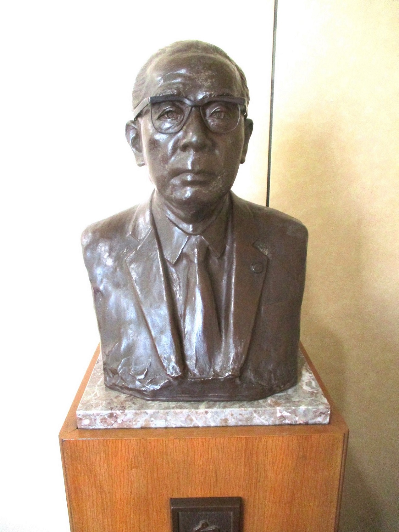 設置場所:東京都清瀬市野塩2-522-1 明治薬科大学 研修・図書・厚生棟3階制作者:滝川毘堂(びどう、1914—1980)、二紀会委員制作時期:1975年6月14日画像提供:林久治⇒銅像探索記/f
